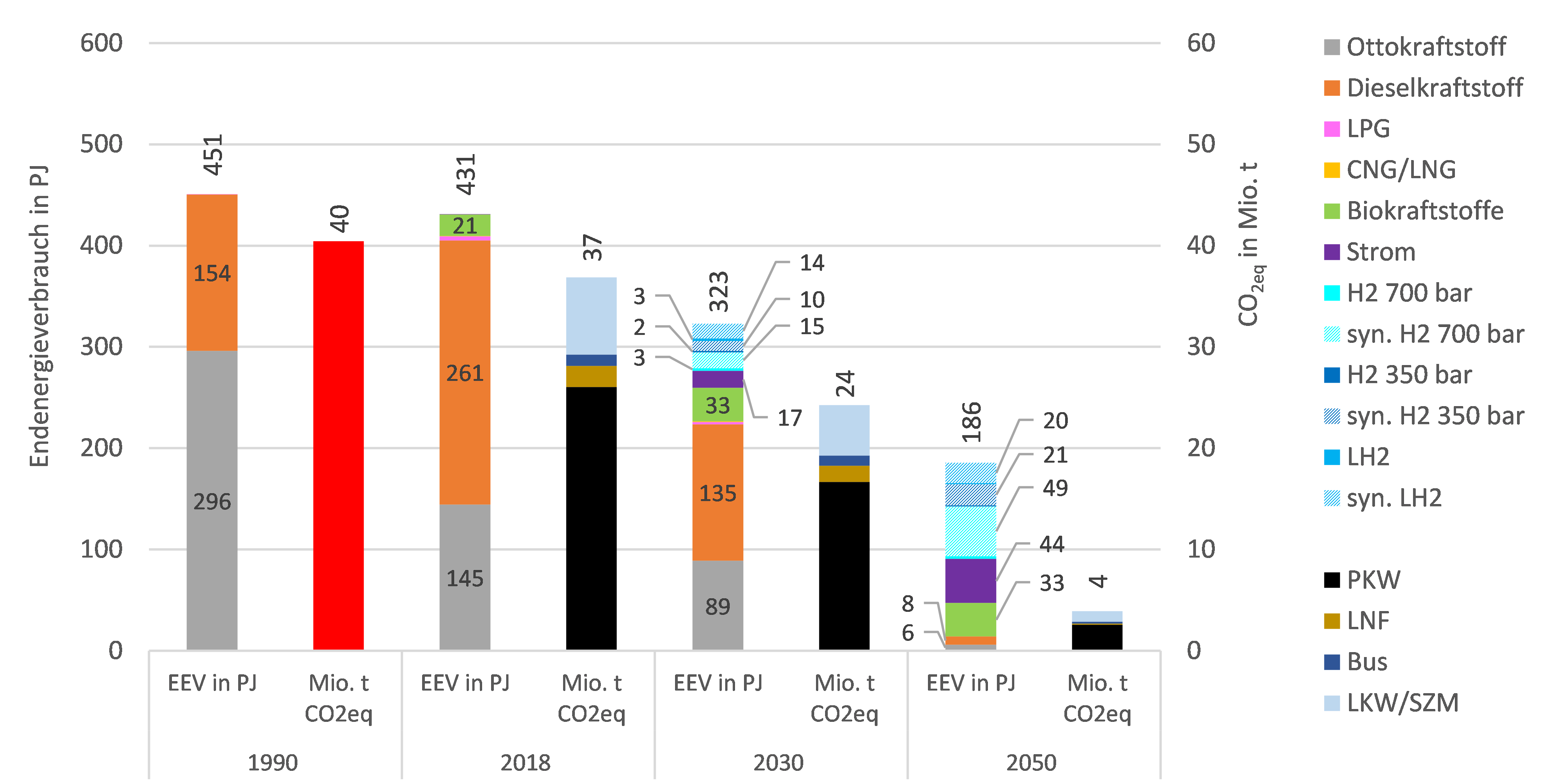Der Verkehrssektor in Deutschland ist durch einen stetig steigenden Energiebedarf und Ausstoß von Treibhausgasemissionen gekennzeichnet. Dieser lag im 2021 bei 148 Mio. t CO2äq. und hat sich im Vergleich zu 1990 mit 163 Mio. t CO2äq. nur geringfügig verringert. Diese Entwicklung steht dem politischen Willen der Bundesregierung gegenüber den Energieverbrauch und die resultierenden Emissionen über alle Sektoren hinweg zu senken. Zentrales Instrument zur Reduktion von Treibhausgasen und der Steigerung der Effizienz im Verkehrssektor ist der Einsatz von alternativen Kraftstoffen und Antrieben.